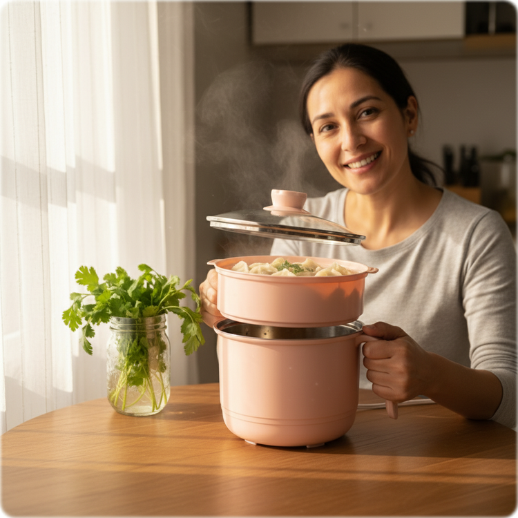 Enjoy a gallery of delicious meals made easy. Watch how the Smart Mini Electric Pot boils, simmers, and steams your favorites. Every click shows its compact convenience and playful performance.