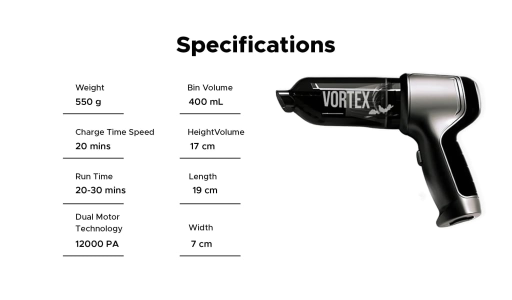 Lightweight and portable, it fits in your glove box for quick clean-ups anytime, anywhere.