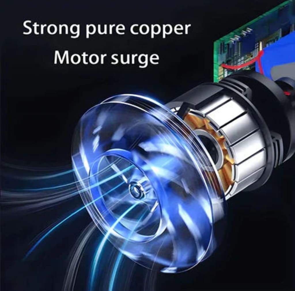 Our Mini Portable Wireless Vacuum Cleaner offers powerful, industrial-grade suction in a compact design. With a rechargeable battery and six specialized attachments, it tackles dust, dirt, and debris both inside and outside your vehicle with ease.